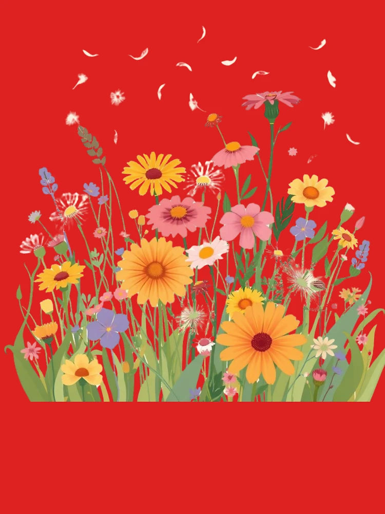 "Colorful Wildflower Field with Falling Petals – Botanical Nature Art" Classic T-Shirt