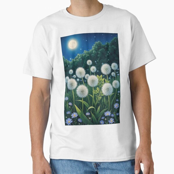 dandelions in the meadow in the moonlight Classic T-Shirt