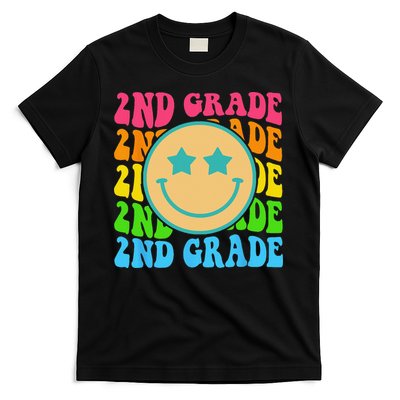 Groovy Second Grade Vibes Face Retro Teachers Back To School T-Shirt