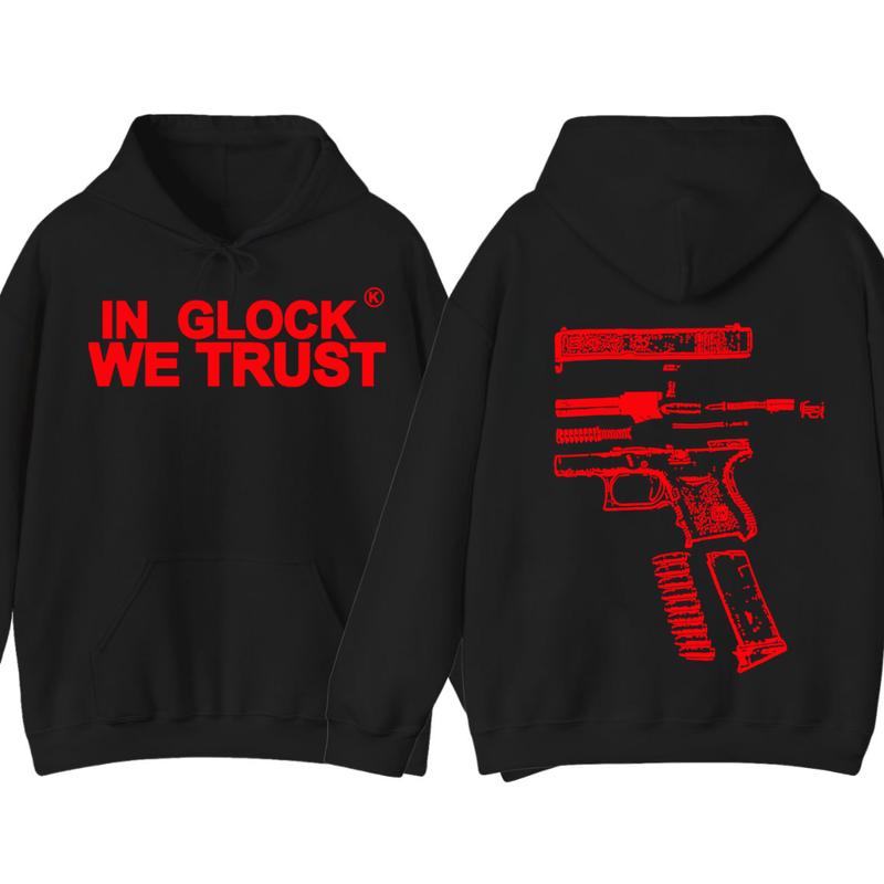 IN GLOCK WE TRUST 2 side Hoodie,Design color Red, Hoodie For Men, Menswear Top , GIft For Men,Full color,Hoodie & sweaters
