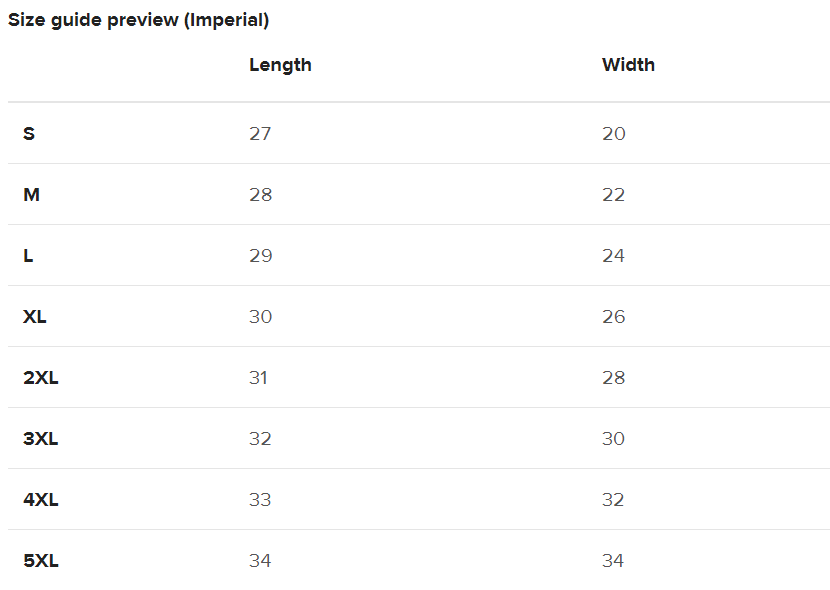 📏 Size Chart