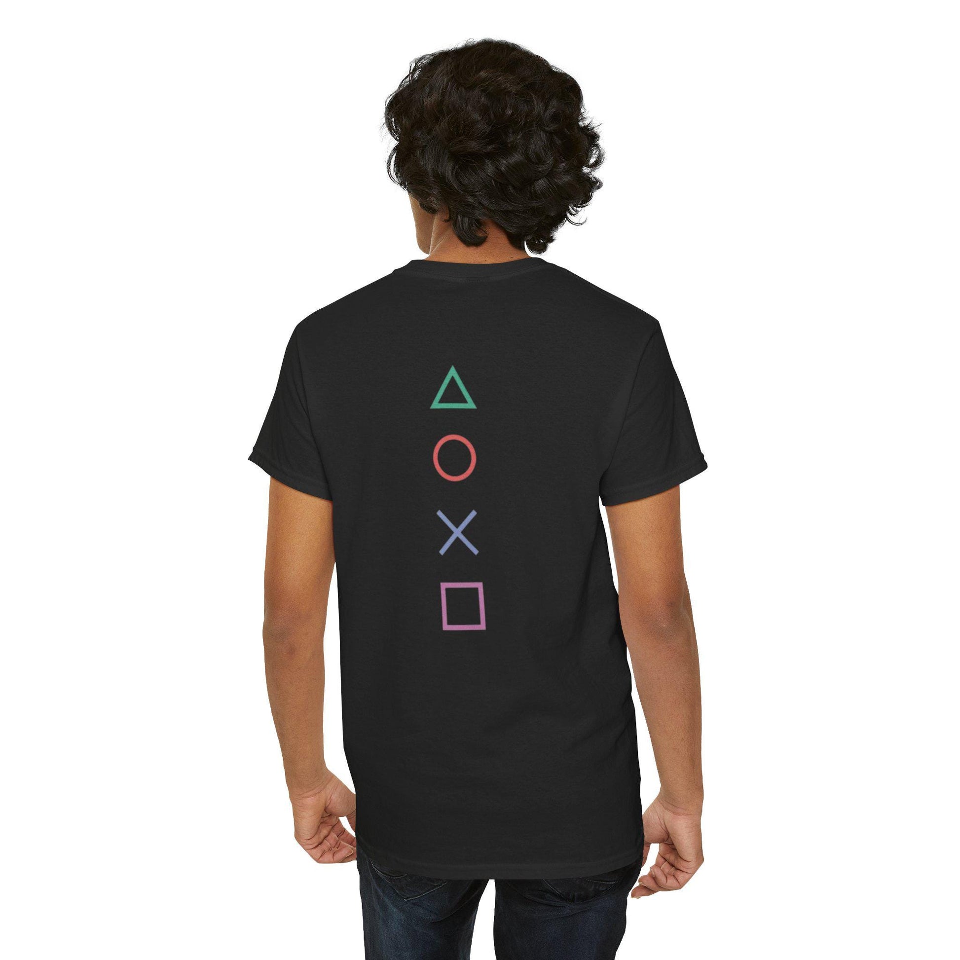 Level Up Your Wardrobe with This PlayStation-Inspired Tee – Featuring Iconic Triangle, Circle, X, and Square Buttons on the Back