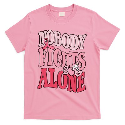 Nobody Fights Alone Breast Cancer Awareness Retro Groovy T-Shirt